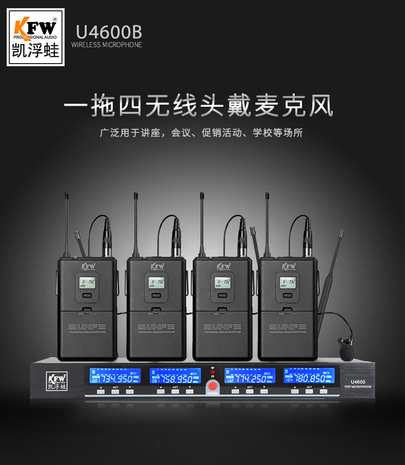 凱浮蛙(KFW)U 4600 B無線マイクU段を引っ張って、四つのヘッドバンドをつけて演説マイクを訓練します。