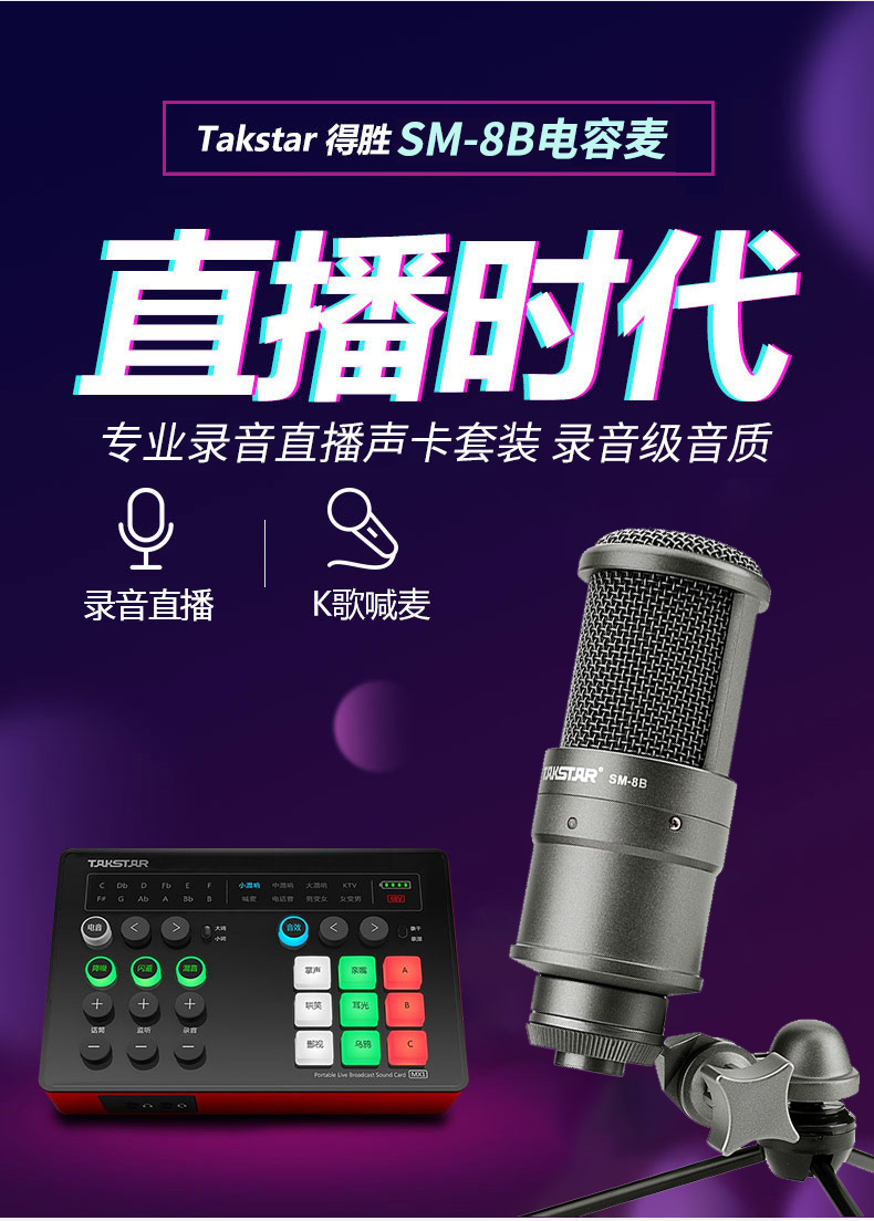 得勝(TAKSTAR)SM8 Bコンデンサーマイクカードセットの手ぶれライブ装置全セットの携帯電話電脳録音網赤アナウンサーマイクの標準装備(サウンドカードを含まない)【写真価格ブランドのオファー】-