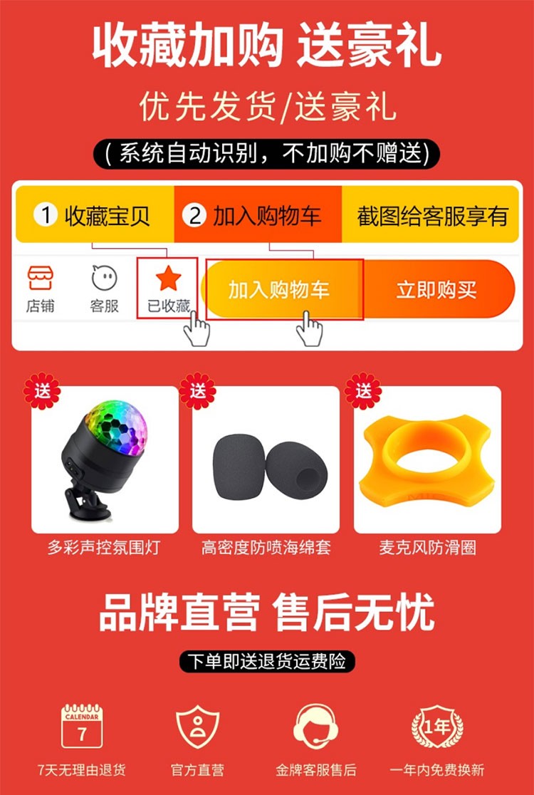 純麦ワイヤレスK歌マイクU 7 PRO家庭KTV全民カラオケマイクテレビマイクロフォン小米TCLテレビプロジェクターマイクU 7 PRO(一部のテレビの機種はサポートされていません。詳細ページを見ることができます。)