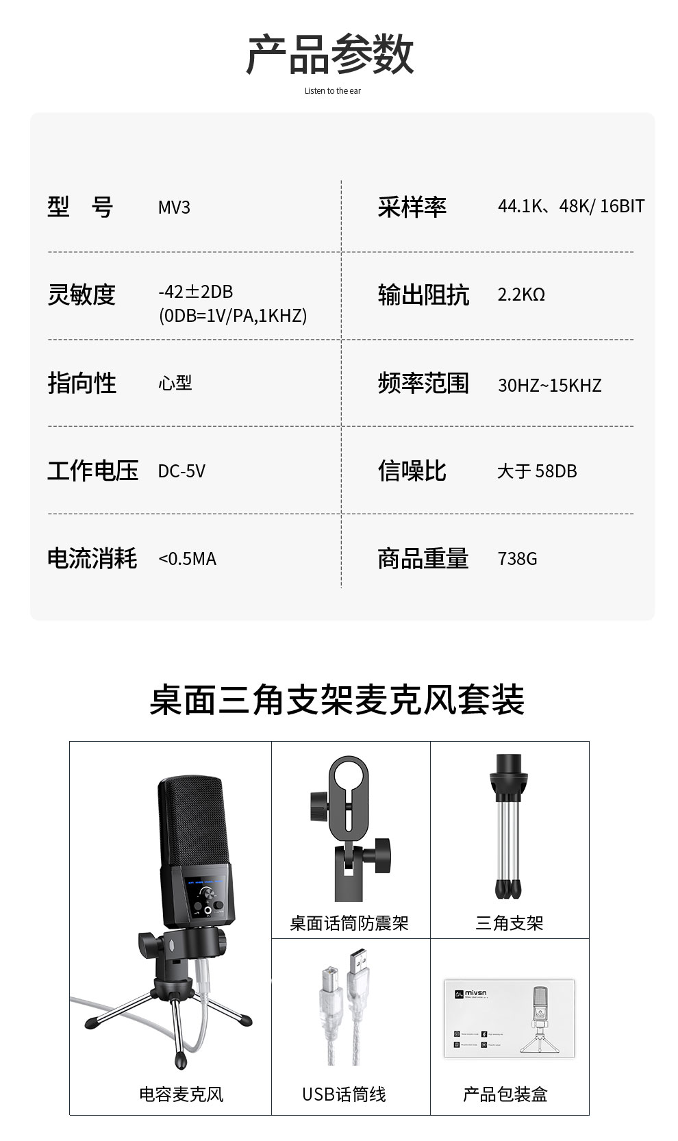 mivsn魅音専門録音マイクノートパソコン専用USBマイクライブ授業内蔵サウンドカード駆動フリープラグMV 3(デスクトップトライアングル版)