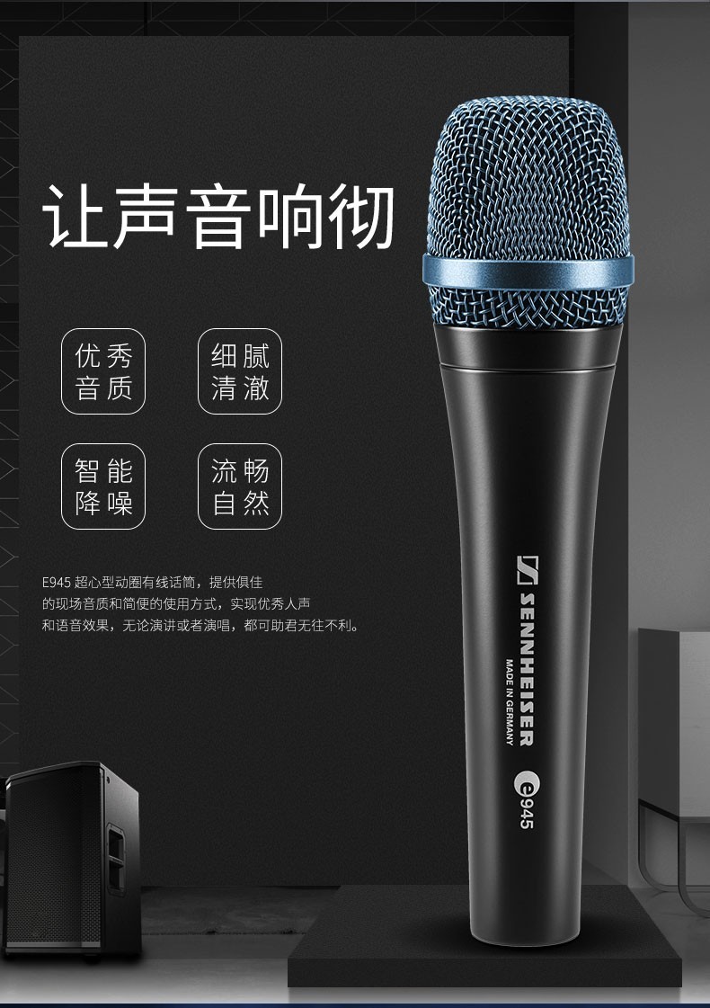 ゼンハイザー(SENNHEISER)E 945プロの舞台で活動圏の有線マイク歌手がマイクを担当します。家庭用K歌の標準装備+線材+デスクトップサポート